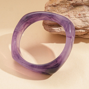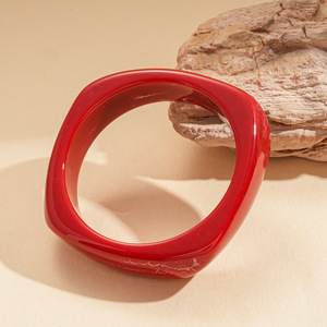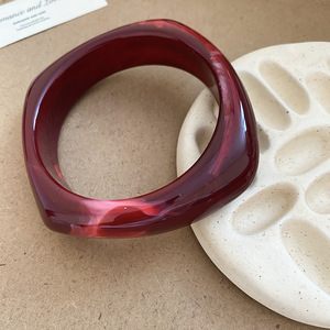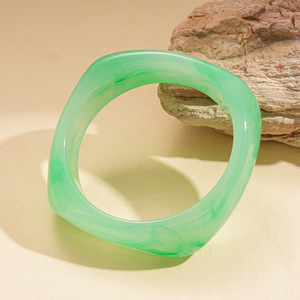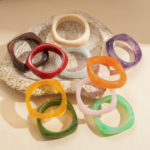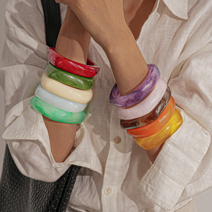 欧美晕染树脂方形圆形几何手镯时尚简约复古小众气质高级感手饰女