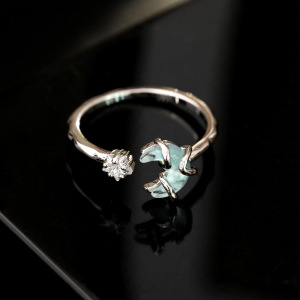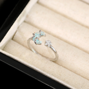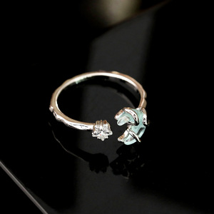 冰川蓝星星月亮开口戒指ins甜酷风高级感食指戒银色极简细圈指环