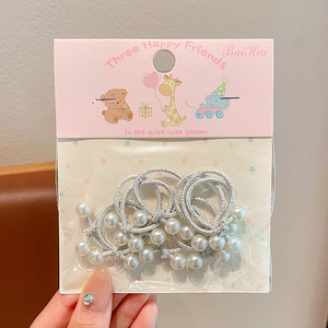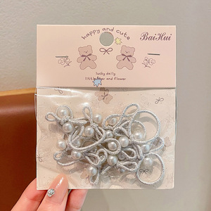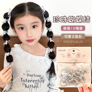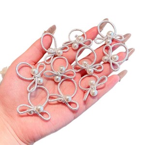 儿童银色蝴蝶结皮筋发圈珍珠拇指圈甜酷小女孩扎辫子头绳宝宝发绳