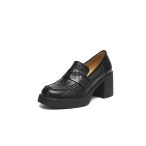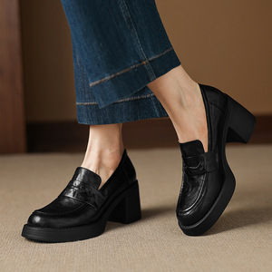 上班穿静音底头层羊皮高跟乐福鞋2025秋季粗跟圆头真皮深口单鞋女