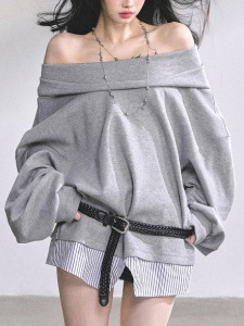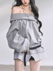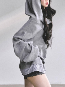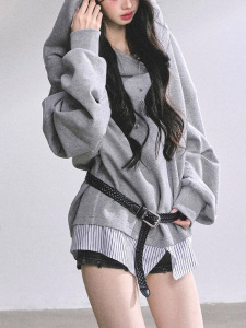 少也眼耶鲁少女 假两件美式oversized连帽卫衣女秋季宽松显瘦上衣