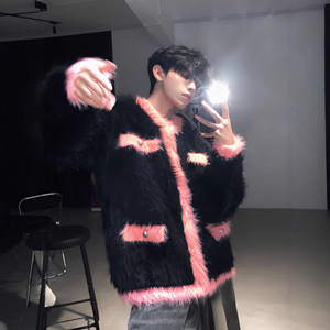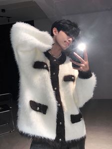 春秋冬季美式超保暖加厚水貂毛毛衣男加棉毛绒针织开衫小香风外套