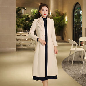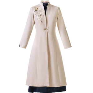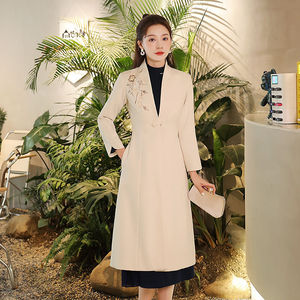 中式国风刺绣复古绣花改良旗袍唐装大衣外套2025秋冬季新款毛呢