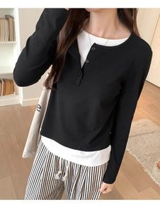黑白拼色假两件T恤女打底衫春秋冬季设计感遮肉显瘦百搭长袖上衣