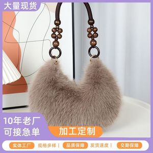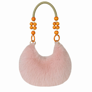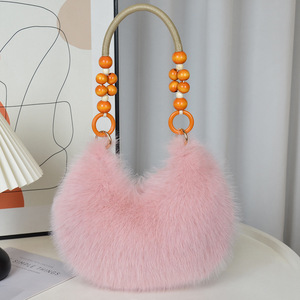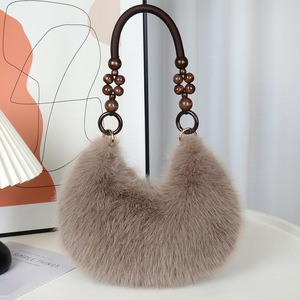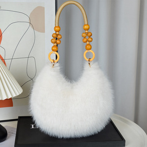 大容量秋冬款单肩腋下包 个性创意纯色饺子包 串珠包 木把包
