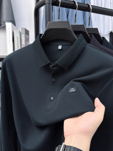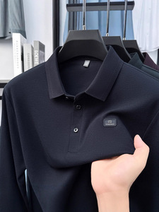 抖音爆款2025春秋季新款男士长袖翻领POLO衫休闲轻奢高级感男装