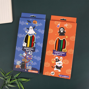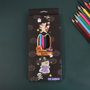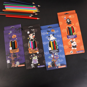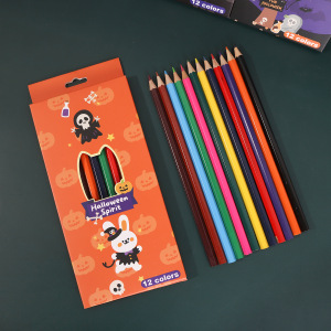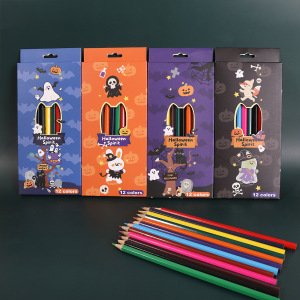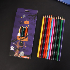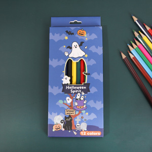 万圣节卡通儿童绘画彩色铅笔节日礼盒12支装油性彩铅涂色美术彩笔