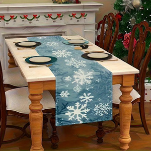TEMU热销圣诞节餐桌派对装饰桌旗亚麻印花隔热防烫桌布厂家直销