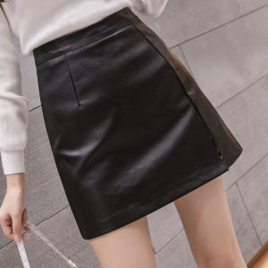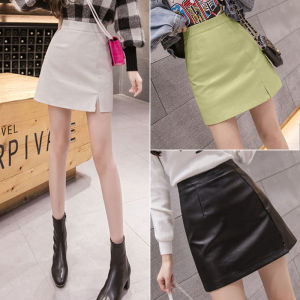 短款皮裙半身裙女秋冬新款显瘦字高腰皮包臀果绿色小短裙