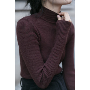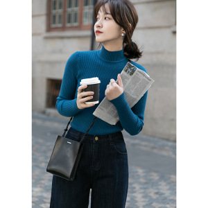 觅定半高领打底衫女秋冬内搭毛衣针织衫加厚上衣冬季新款黑色白色