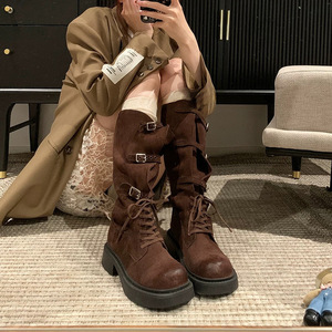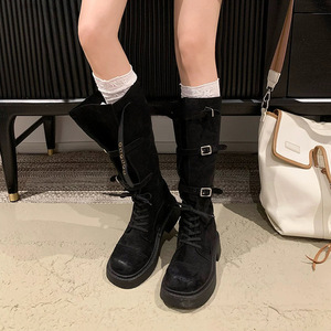 厚底可调节超大腿围长筒靴女2025新款秋冬不过膝长靴子高筒骑士靴