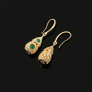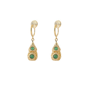 EH1387国潮镂空葫芦耳饰耳环女气质耳坠绿色复古蚊香盘耳夹无耳洞