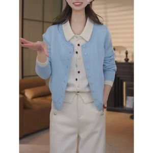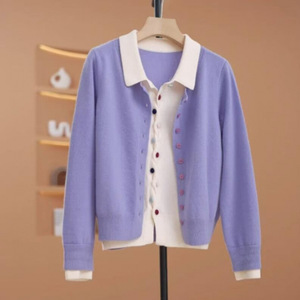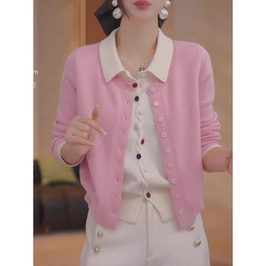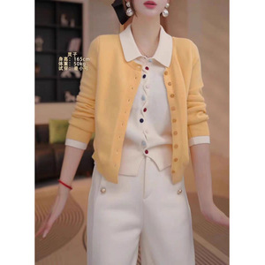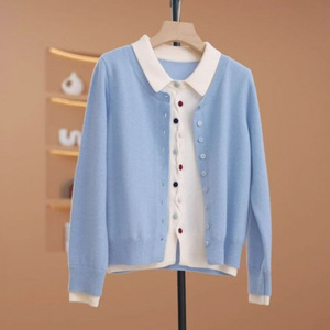 鸿5915假两件彩扣针织衫女毛衣开衫新款内搭韩系减龄宽松打底上衣