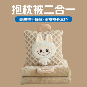 新款加厚泰迪绒图拉拉手提款抱枕被牛奶绒午睡二合一车载靠垫被