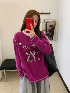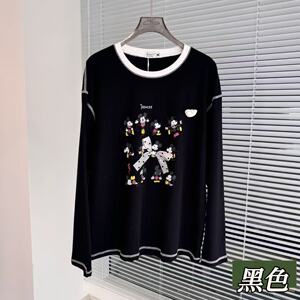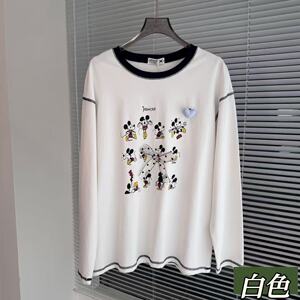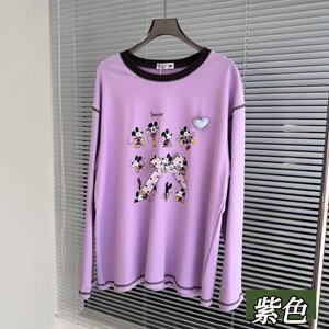 25秋冬韩系新款米奇蝴蝶结印花长袖T宽松减龄慵懒风明线打底衫女