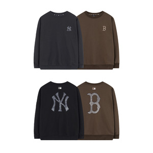 正确版MLB秋冬新款男女情侣背标大LOGO复古老花男女圆领套头卫衣