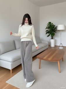 绵羊毛加绒加厚桑蚕丝羊绒休闲裤松紧腰阔腿裤显瘦保暖高腰休闲裤