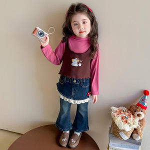 女童2025新款假两件牛仔裙裤甜美可爱风小童洋气休闲牛仔喇叭裤潮