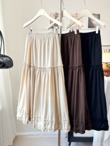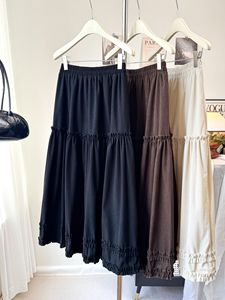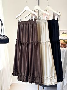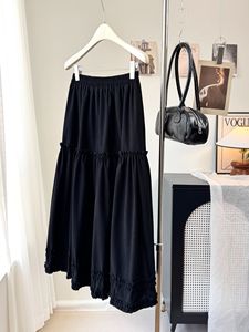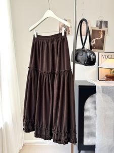 温柔风木耳边拼接丝绒半身裙女冬季2025新款高腰垂感宽松大摆伞裙