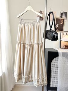 温柔风木耳边拼接大摆灯芯绒半身裙女秋冬2025新款显瘦A字长裙子