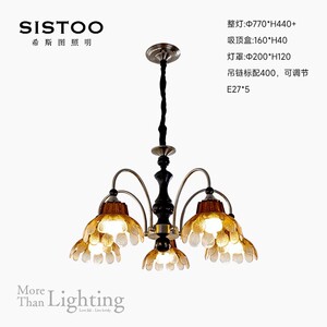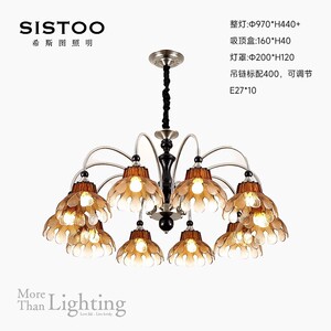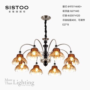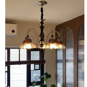 法式中古美拉德色系胡桃木美式复古实木餐厅客厅大厅吊灯卧室灯具