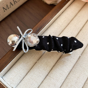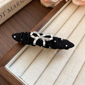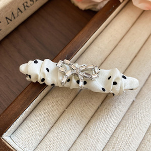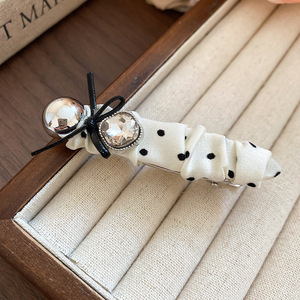 镶钻布艺波点蝴蝶结圆形时尚发夹侧边碎发鸭嘴夹轻奢高级感发饰女
