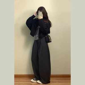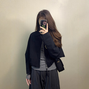 2025秋新款早秋季冷淡系超好看韩里韩气的穿搭夹克黑色外套女