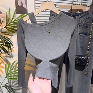春秋季新款斜领露肩吊带设计感时尚百搭休闲外穿气质上衣打底衫女