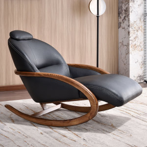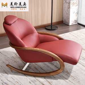 白蜡木全实木框架单人舒适摇摇椅客厅皮质跑车休闲躺椅懒人沙发椅