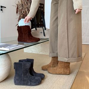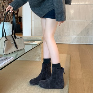MARCO&JOYCE平底复古勃肯短靴女圆头马丁靴显瘦堆堆西部牛仔靴