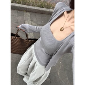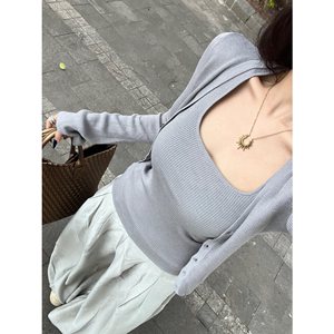 灰色针织吊带外搭开衫两件套女春秋季韩系别致穿搭小个子上衣