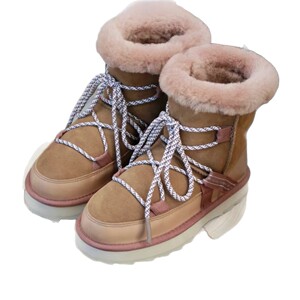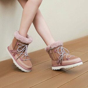 2025新款时尚百搭系带磨砂真皮真毛厚底增高短靴保暖加厚雪地靴