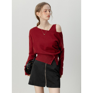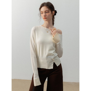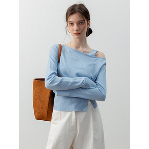EGGKA设计感时尚针织衫春秋季韩系温柔气质别致斜肩上衣女