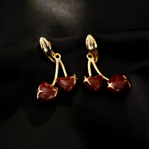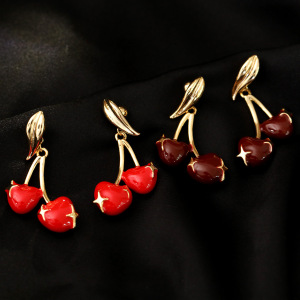 浆果派对红色珐琅滴釉樱桃耳坠长款显瘦气质银针耳环十字星忙耳钉