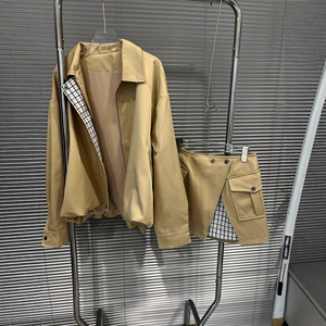 2025年早秋新款时尚潮流洋气翻领拉链短款外套女宽松显瘦百搭套装