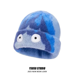 冰火人针织帽潮流时尚新款针织帽时尚蓝色毛线帽子搞怪保暖帽