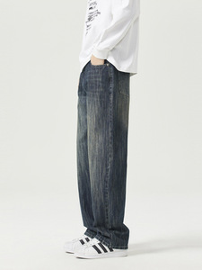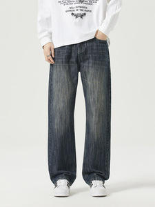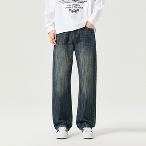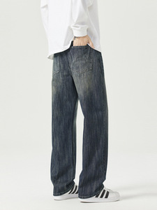 枫舍男装 /2025秋冬 宽松直筒版型 复古竹节纹蓝牛仔裤男高街百搭