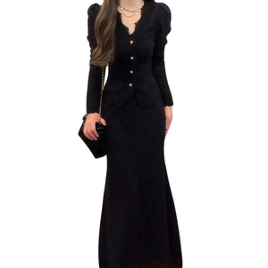 法式黑色针织连衣裙子女秋装2025新款小个子香风一整套早秋季穿搭