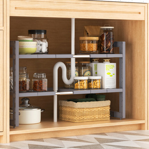 厨房下水槽置物架可伸缩橱柜分层架子卫生间内管道置物收纳架