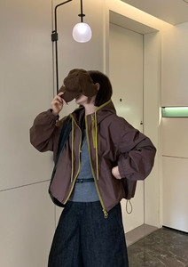 连帽拉链冲锋衣外套女欧洲站2025年秋季新款韩版撞色百搭显瘦夹克