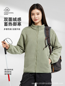 秋冬季男女款户外运动抓绒衣双面摇粒绒加厚保暖立领宽松开衫外套