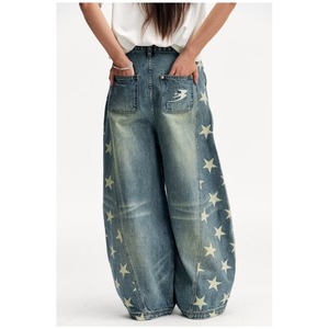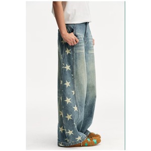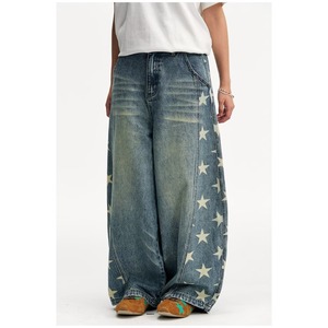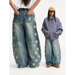 国潮牌情侣美式刮烂破洞做旧水洗牛仔裤宽松直筒长裤
