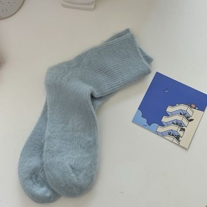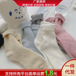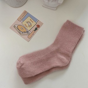 防寒棉袜学生秋冬加绒保暖少女条纹中筒袜软软糯糯纯色毛绒袜子女