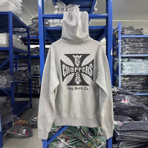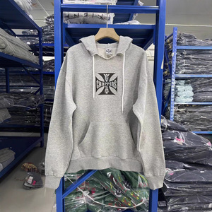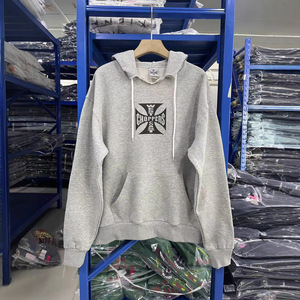 25ss水洗灰色做旧破坏连帽卫衣男女宽松休闲套头帽衫