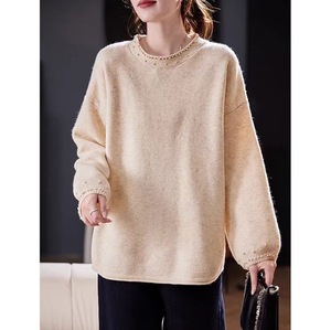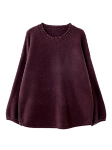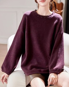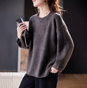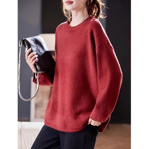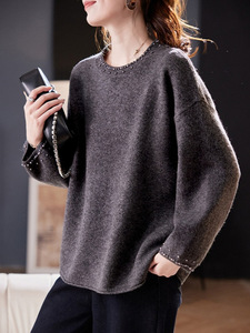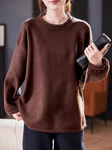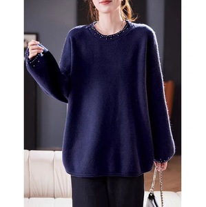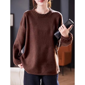 复古文艺毛衣女秋季2025新款松弛感百搭宽松圆领钉珠针织长袖上衣