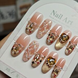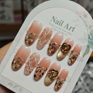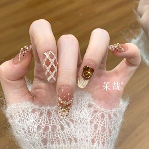 纯手工纯欲风千金香风芭蕾珍珠格纹珍珠气质氛围感显白美甲穿戴甲