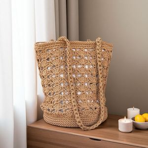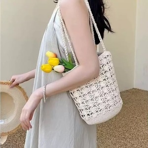 韩国镂空编织包包新款棉线手工编织包单肩水桶草编包包度假沙滩包