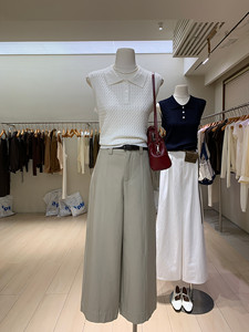复古老钱风净色麻花polo领针织衫女高级干练气质高弹修身无袖背心