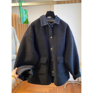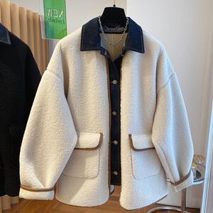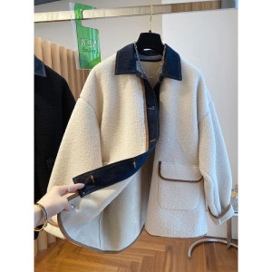 2025新款韩版宽松牛仔拼接羊羔毛外套女秋冬今年流行皮毛一体上衣