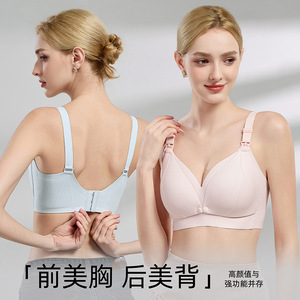 10A抑菌山茶花聚拢无钢圈哺乳文胸上开扣孕哺期孕妇内衣大胸显小